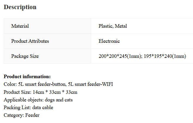 Distributeur Automatique de Nourriture pour Animaux 5L
